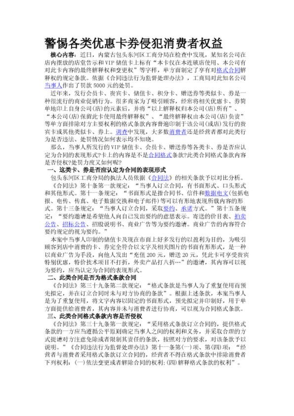 警惕各類優(yōu)惠卡券侵犯消費者權益