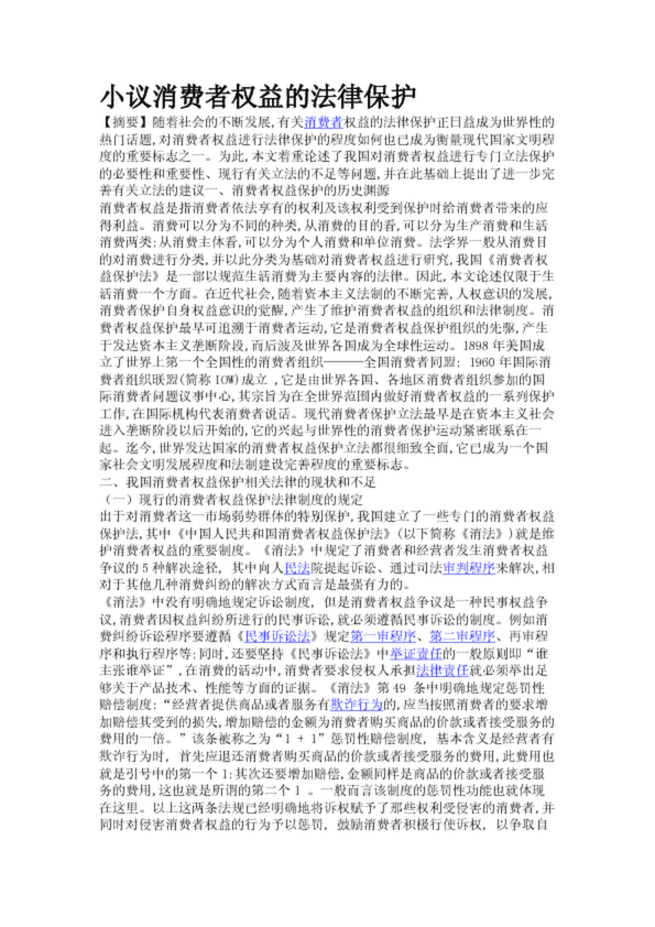 小議消費(fèi)者權(quán)益的法律保護(hù)(27.35KB)
