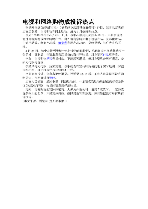 電視和網(wǎng)絡(luò)購(gòu)物成投訴熱點(diǎn)(19.17KB)