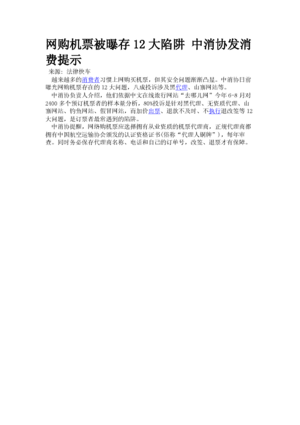 網購機票被曝存12大陷阱 中消協(xié)發(fā)消費提示