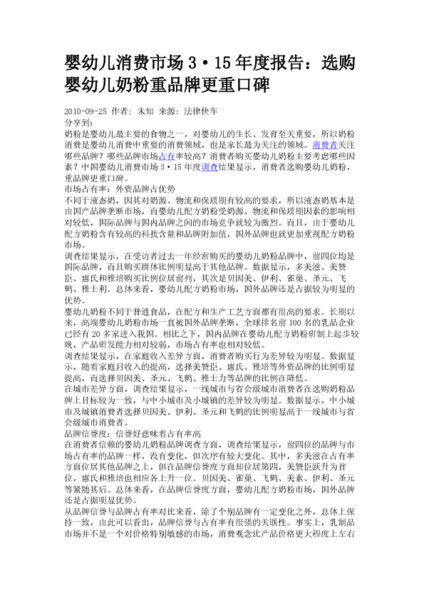 嬰幼兒消費市場3·15年度報告:選購嬰幼兒奶粉重品牌更重口碑