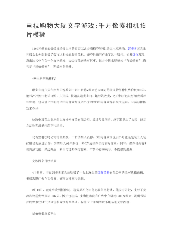 電視購(gòu)物大玩文字游戲千萬(wàn)像素相機(jī)拍片模糊