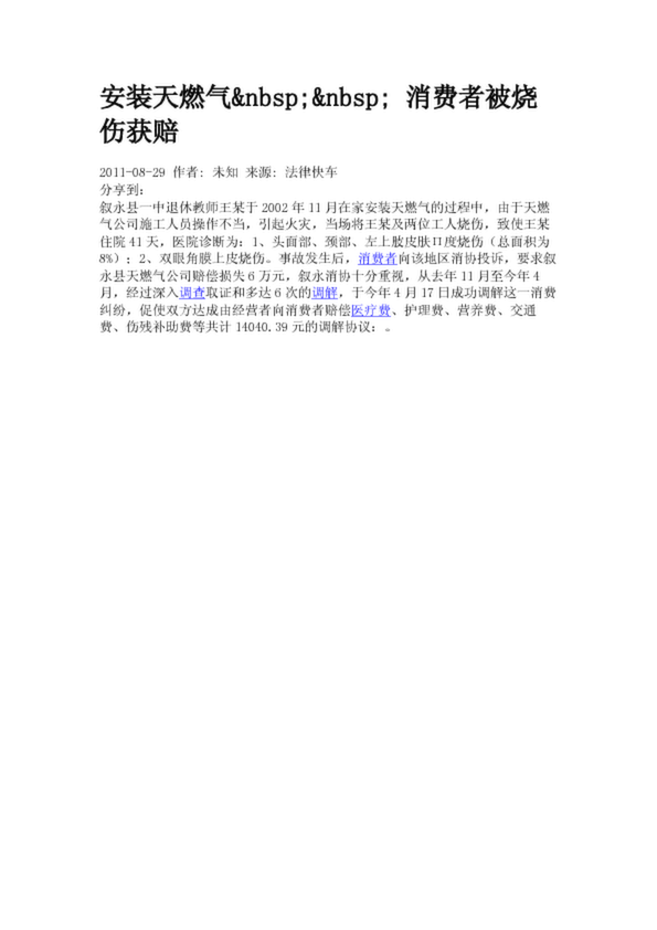 安裝天燃氣 消費者被燒傷獲賠