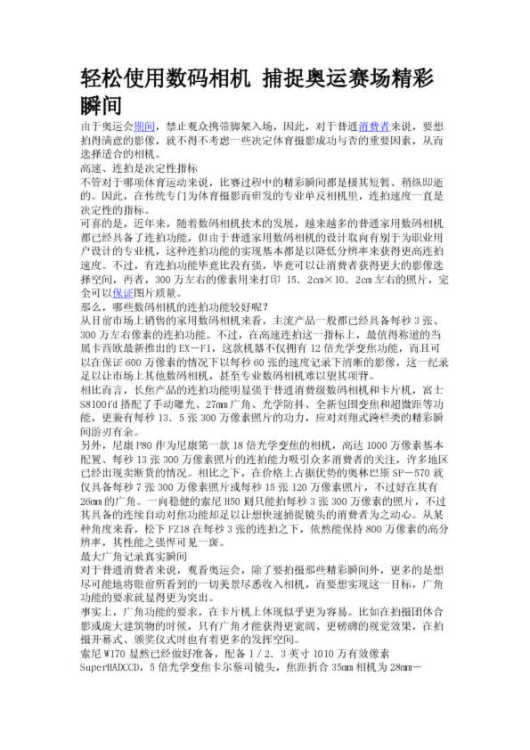 輕松使用數(shù)碼相機(jī) 捕捉奧運賽場精彩瞬間