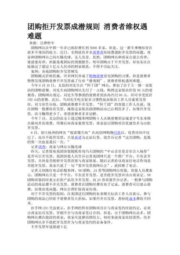 團(tuán)購拒開發(fā)票成潛規(guī)則 消費者維權(quán)遇難題
