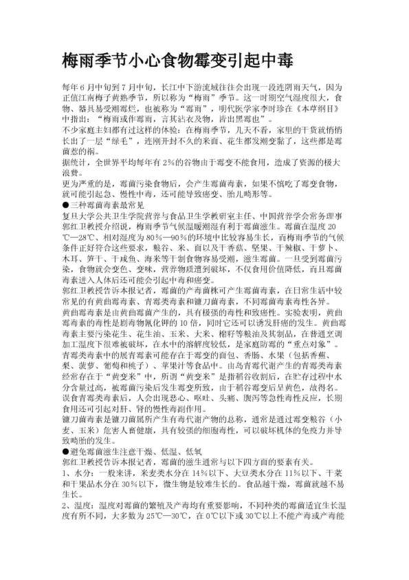 梅雨季節(jié)小心食物霉變引起中毒