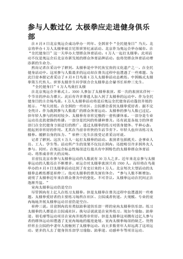 參與人數(shù)過億 太極拳應走進健身俱樂部