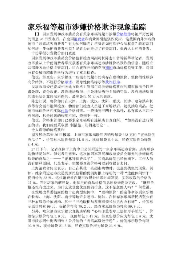 家樂福等超市涉嫌價(jià)格欺詐現(xiàn)象追蹤(28.42KB)