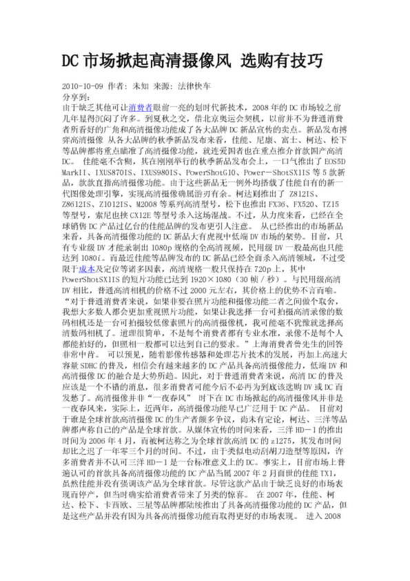 DC市場(chǎng)掀起高清攝像風(fēng) 選購(gòu)有技巧