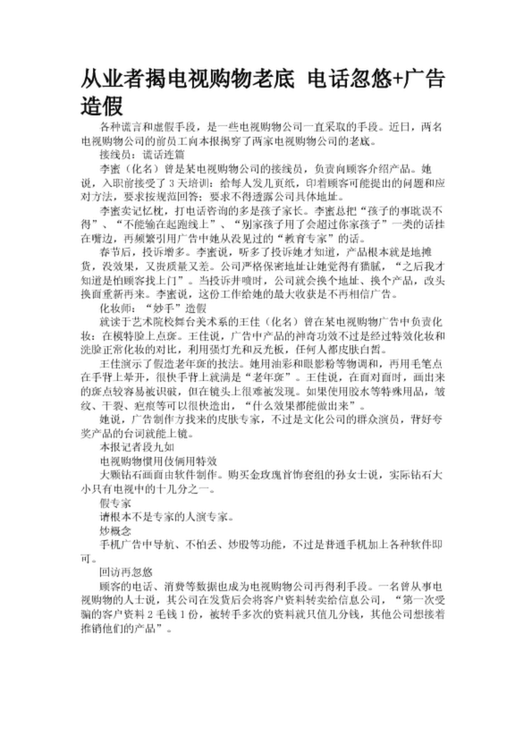 從業(yè)者揭電視購物老底 電話忽悠+廣告造假(21.28KB)