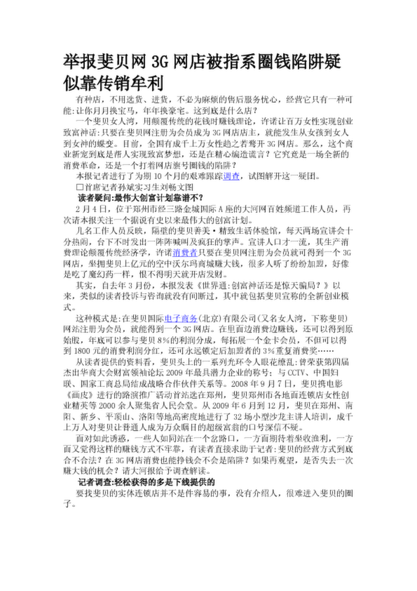 舉報(bào)斐貝網(wǎng)3G網(wǎng)店被指系圈錢陷阱疑似靠傳銷牟利