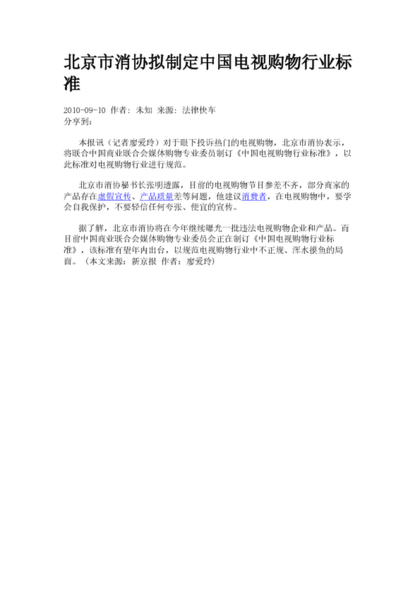 北京市消協(xié)擬制定中國(guó)電視購(gòu)物行業(yè)標(biāo)準(zhǔn)