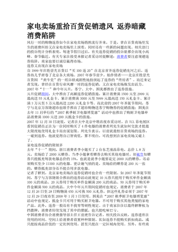 家電賣(mài)場(chǎng)重拾百貨促銷遺風(fēng) 返券暗藏消費(fèi)陷阱