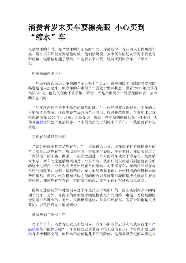 消費(fèi)者歲末買車要擦亮眼 小心買到“縮水”車(21.54KB)