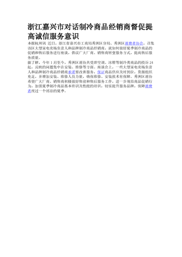 浙江嘉興市對(duì)話制冷商品經(jīng)銷商督促提高誠(chéng)信服務(wù)意識(shí)