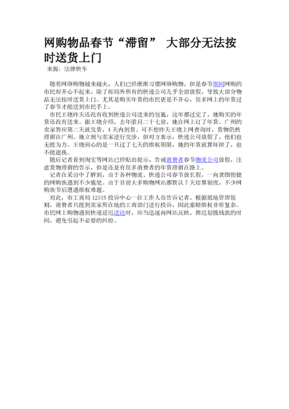 網(wǎng)購物品春節(jié)“滯留” 大部分無法按時送貨上門(18.86KB)
