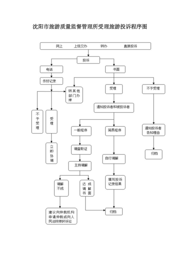 沈陽市旅游質(zhì)量監(jiān)督管理所受理旅游投訴程序圖