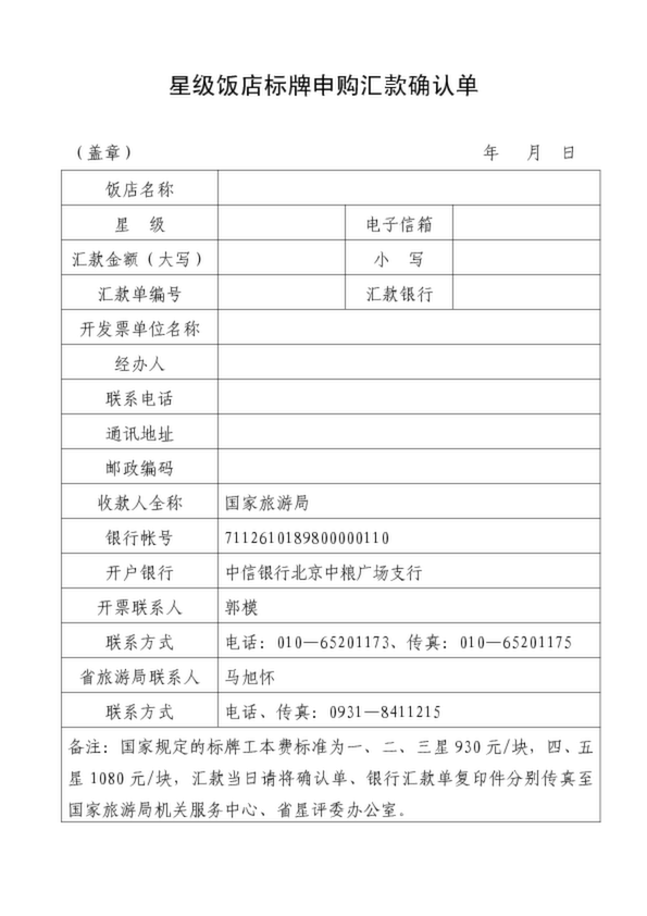 星級飯店標牌申購匯款確認單