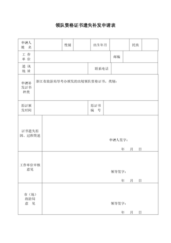 出境領(lǐng)隊(duì)證遺失補(bǔ)發(fā)申請(qǐng)表