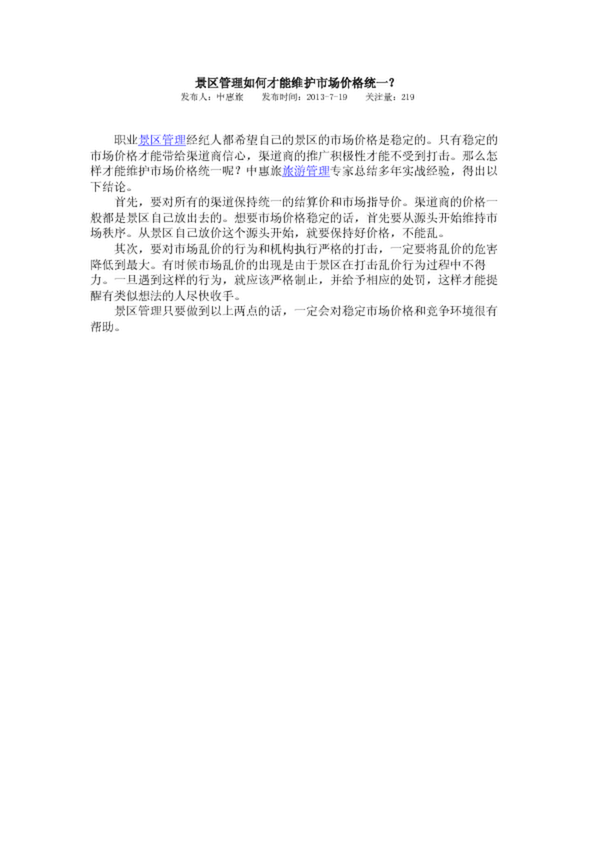 景區(qū)管理如何才能維護市場價格統(tǒng)一?