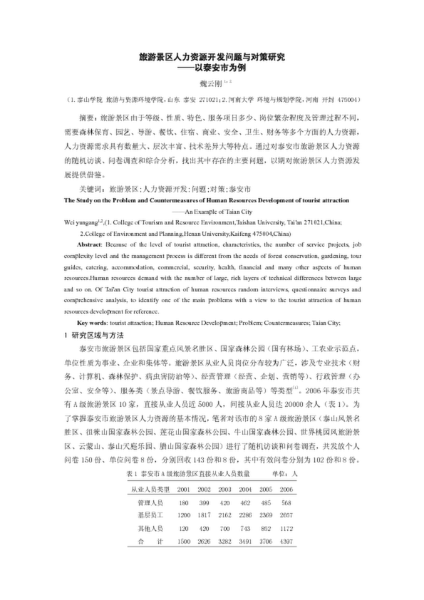旅游景區(qū)人力資源開發(fā)問題與對(duì)策研究_——以泰安市為例