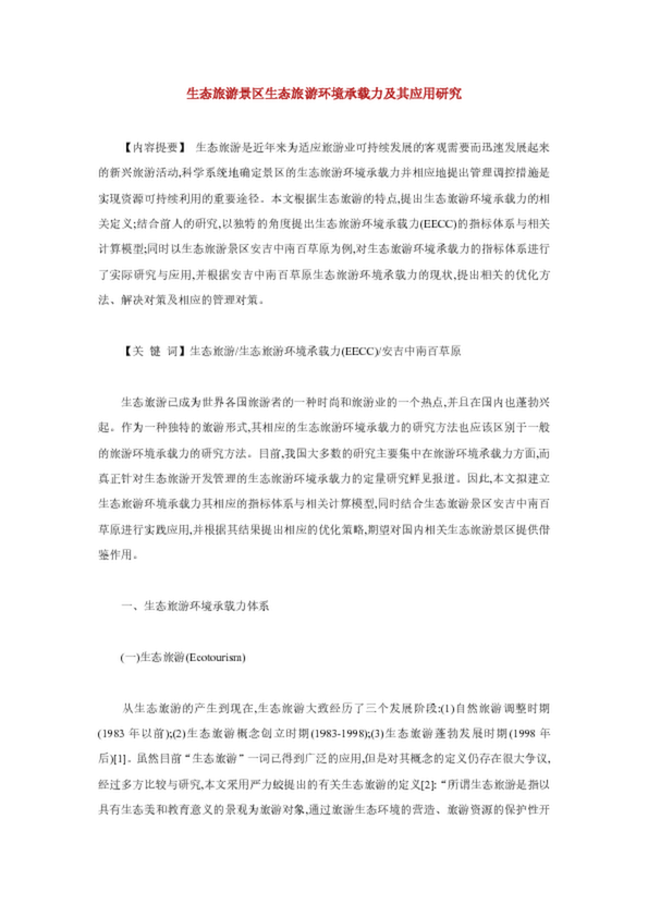 生態(tài)旅游景區(qū)生態(tài)旅游環(huán)境承載力及其應(yīng)用研究(30.50KB)