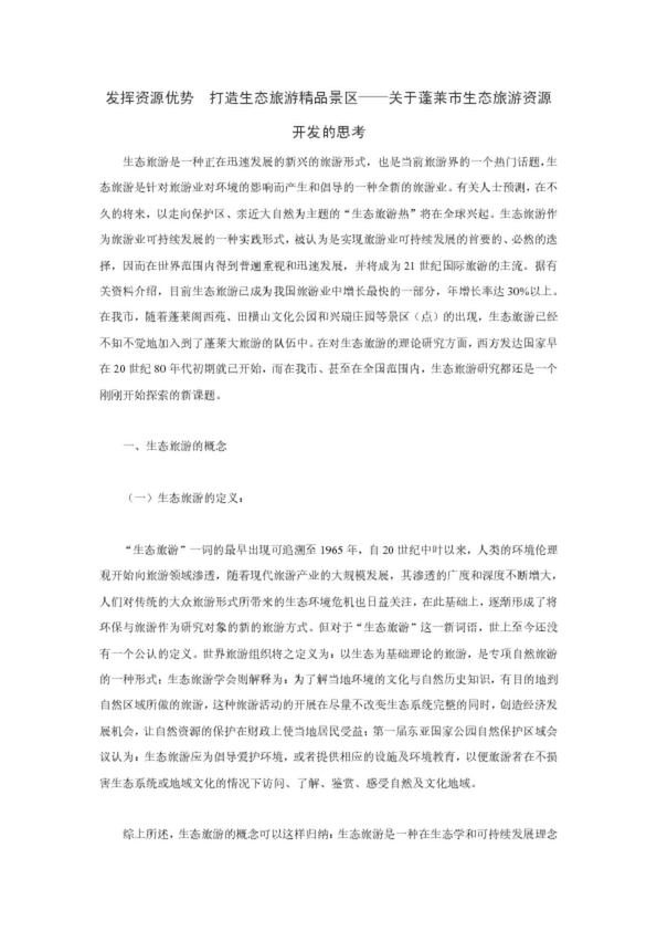 發(fā)揮資源優(yōu)勢 打造生態(tài)旅游精品景區(qū)——關(guān)于蓬萊市生態(tài)旅游資源開發(fā)的思考