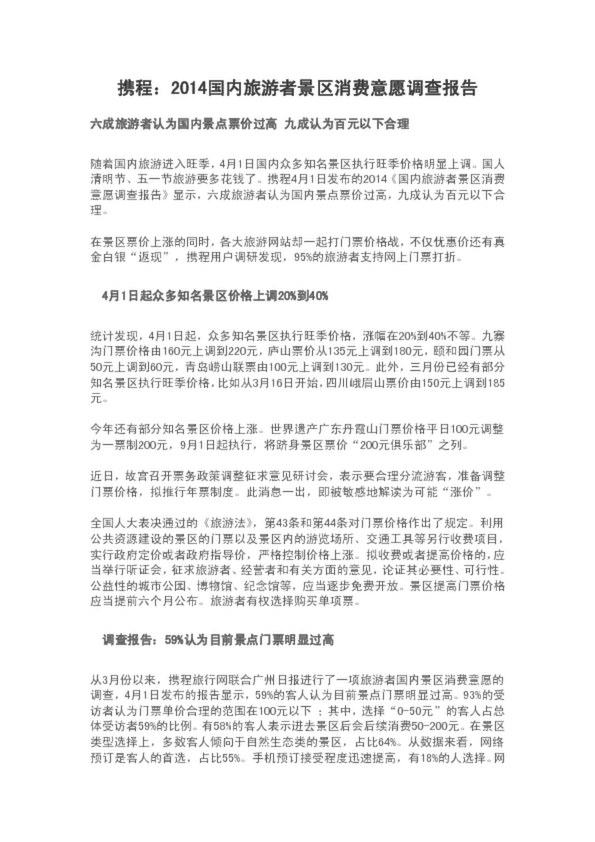 攜程:2014國內(nèi)旅游者景區(qū)消費意愿調(diào)查報告
