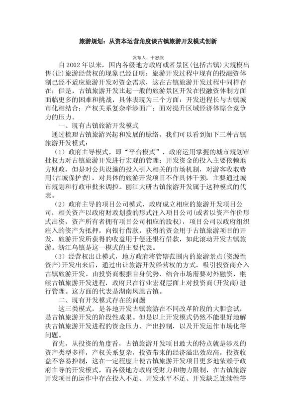 旅游規(guī)劃:從資本運(yùn)營角度談古鎮(zhèn)旅游開發(fā)模式創(chuàng)新