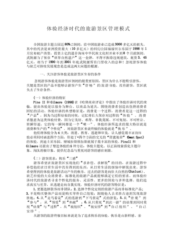 體驗經(jīng)濟時代的旅游景區(qū)管理模式