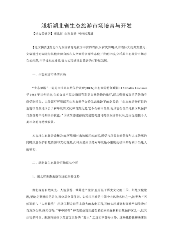 淺析湖北省生態(tài)旅游市場培育與開發(fā)