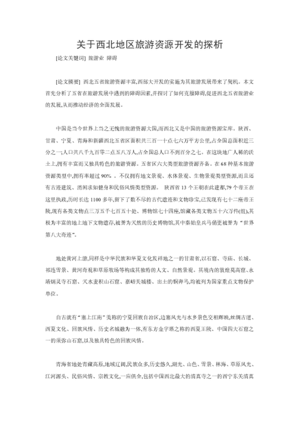 關于西北地區(qū)旅游資源開發(fā)的探析