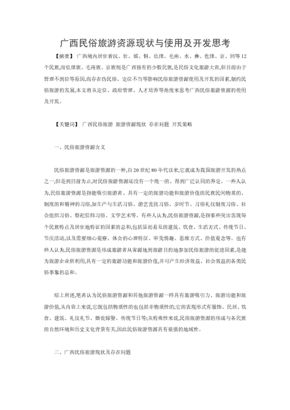 廣西民俗旅游資源現(xiàn)狀與使用及開發(fā)思考(17.00KB)