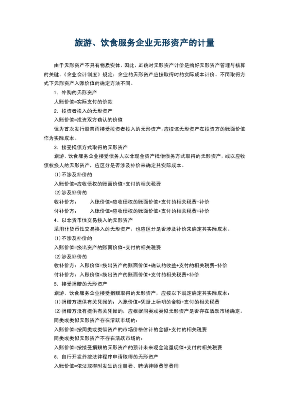旅游、飲食服務(wù)企業(yè)無(wú)形資產(chǎn)的計(jì)量(18.50KB)