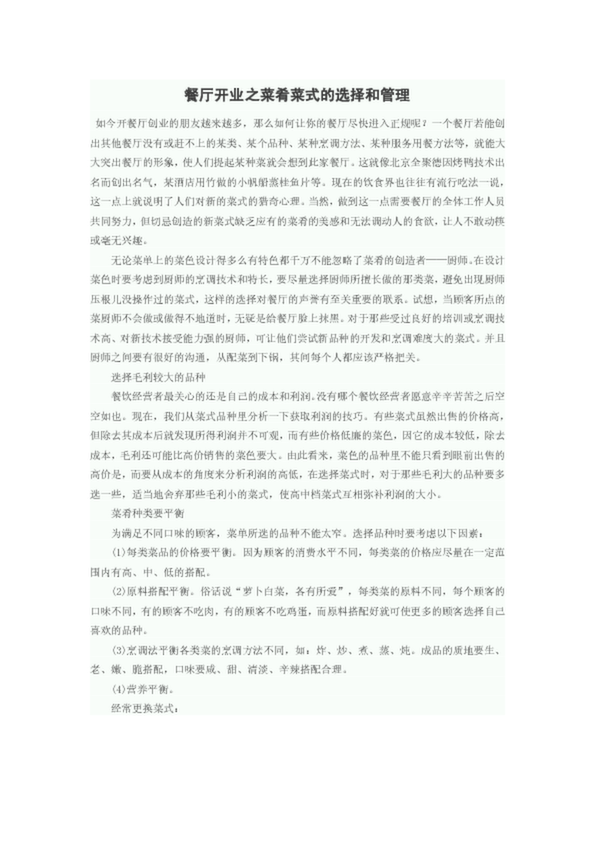 餐廳開業(yè)之菜肴菜式的選擇和管理(28.50KB)