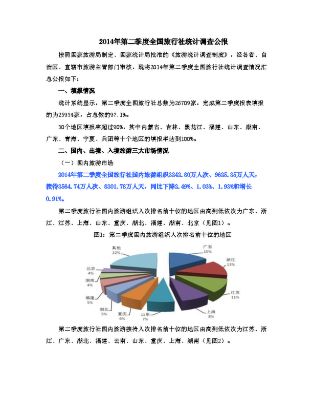 2014年第二季度全國(guó)旅行社統(tǒng)計(jì)調(diào)查公報(bào)