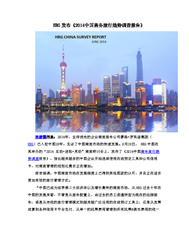 HRG發(fā)布《2014中國商務旅行趨勢調(diào)查報告》