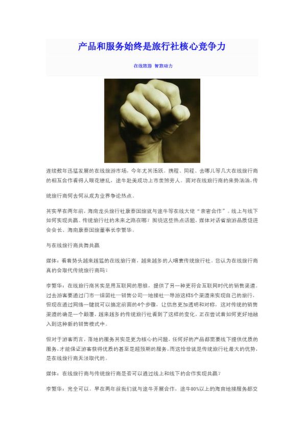 產(chǎn)品和服務(wù)始終是旅行社的核心競爭力