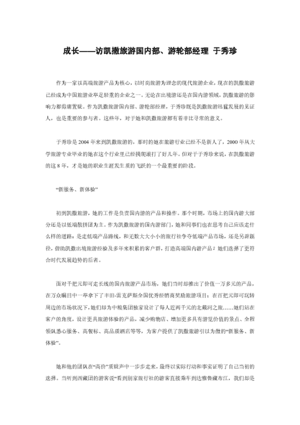 成長——訪凱撒旅游國內(nèi)部、游輪部經(jīng)理 于秀珍