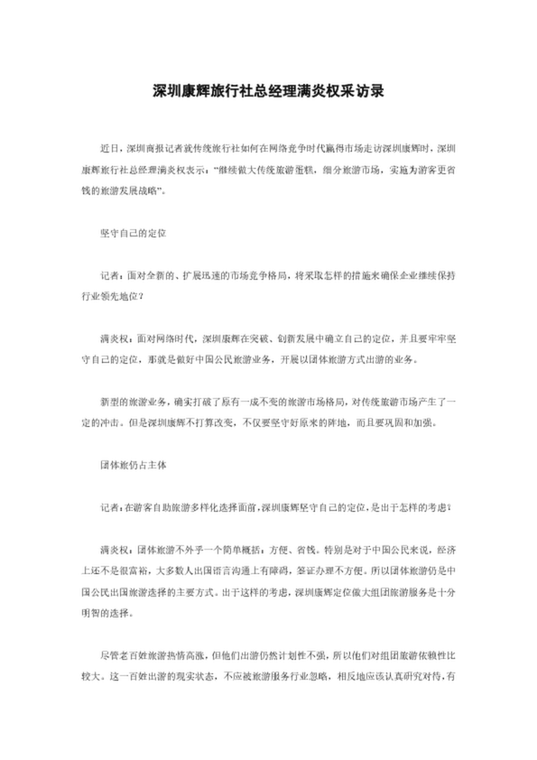 深圳康輝旅行社總經(jīng)理滿炎權(quán)采訪錄
