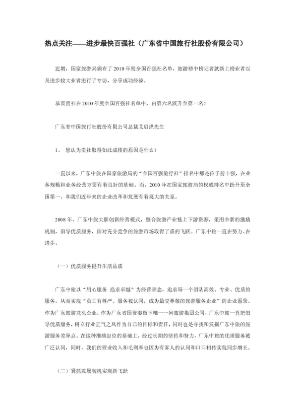 熱點(diǎn)關(guān)注——進(jìn)步最快百?gòu)?qiáng)社(廣東省中國(guó)旅行社股份有限公司)