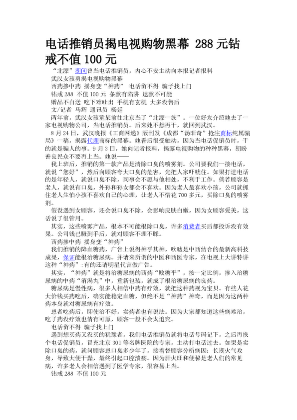 電話推銷員揭電視購(gòu)物黑幕 288元鉆戒不值100元(31.13KB)