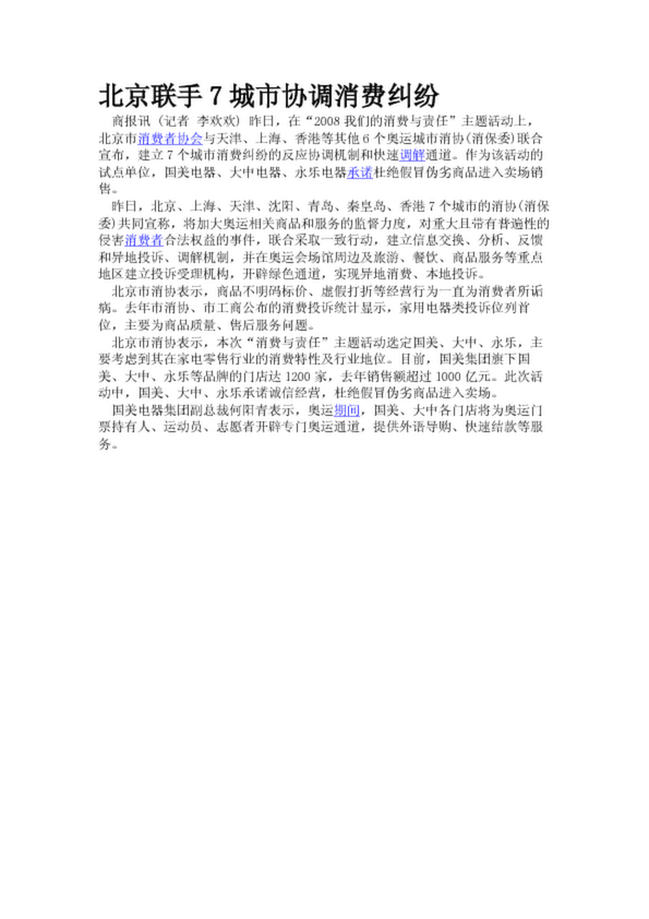 北京聯(lián)手7城市協(xié)調(diào)消費糾紛