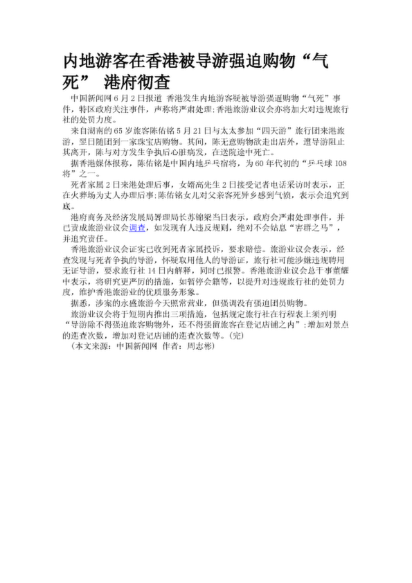 內(nèi)地游客在香港被導(dǎo)游強(qiáng)迫購物“氣死” 港府徹查