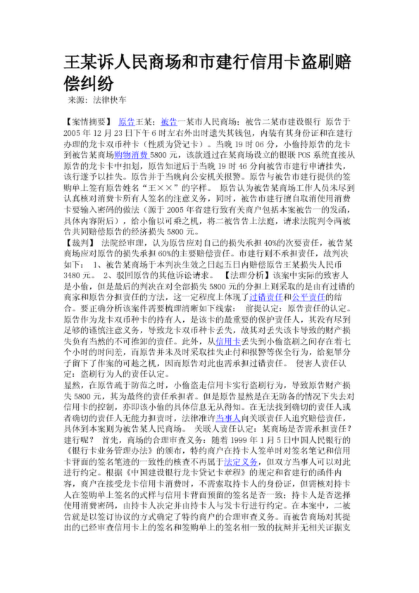 王某訴人民商場和市建行信用卡盜刷賠償糾紛(25.23KB)